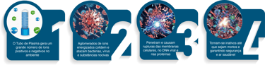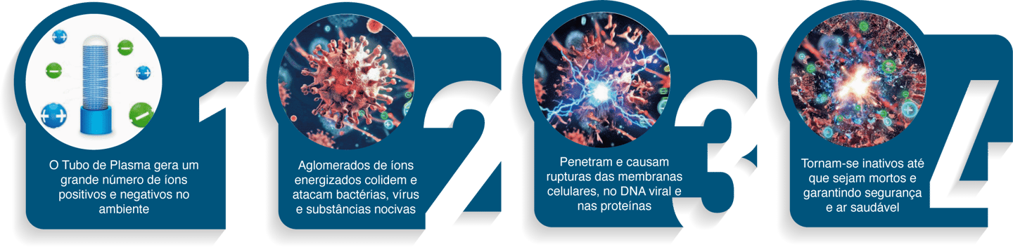 Em uma atmosfera equilibrada de íons positivos e negativos, a liberação de pulsos de elétrons gera energia comparável à das ligações químicas. Essa energia rompe as estruturas moleculares de vírus e bactérias, inativando-os e impedindo sua reprodução. O resultado é um ar mais seguro e biologicamente mais puro.