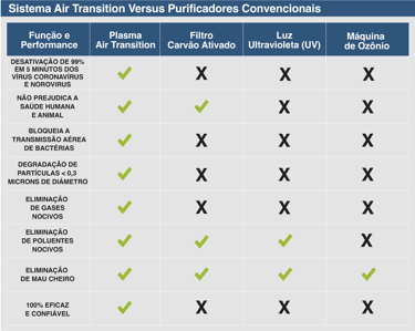 Garantia de ar puro e seguro eliminando vírus, germes, bactérias, odores e mofo.